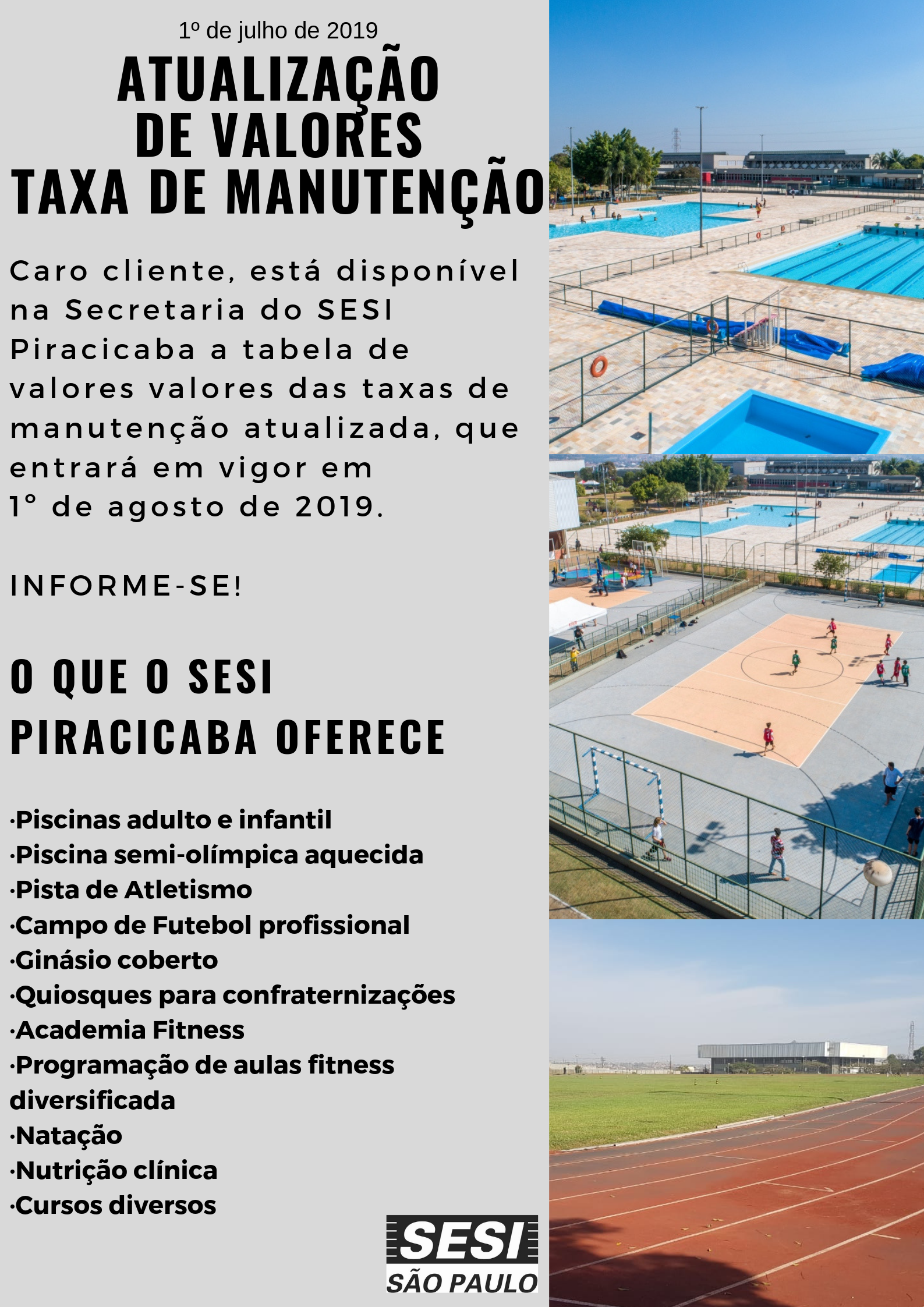 Já está disponível na Secretaria do SESI Piracicaba a tabela atualizada de valores das taxas de manutenção
